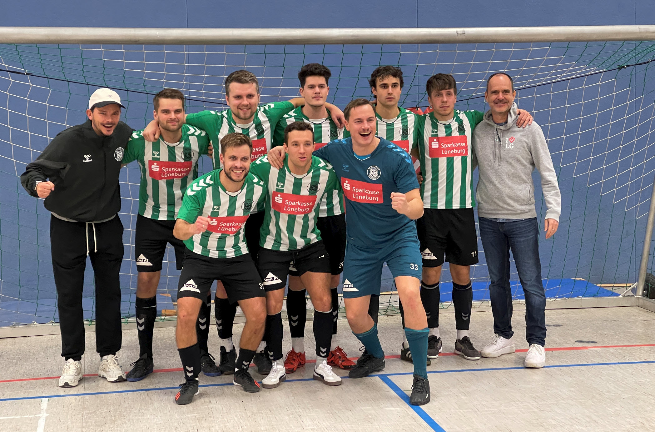 Turniersieger beim Sparkassen-Mitternachtsturnier wurde der TSV Bardowick mit folgenden Spielern: vordere Reihe von links David Schneider, Leon Hamann, Liam Bertelsmann. Hintere Reihe: Trainer Roman Razza, Leon Lübberstedt, Jannek Spieswinkel, Luca Rudloff, Lennart Ahrens, Thorben Glüsing und Torsten Schrell, Vorsitzender des Vorstandes der Sparkasse Lüneburg, der die Siegerehrung durchgeführt hat.Der TSV Bardowick hat sein eigenes Sparkassen-Mitternachtsturnier gewonnen. Weitere Informationen folgen.